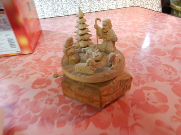 > オルゴール きよしこの夜 ジーザス 羊 木彫 カソリック キリスト教 CHRISTIAN W15D13H15CM 十字架 スイッチありカテドラル