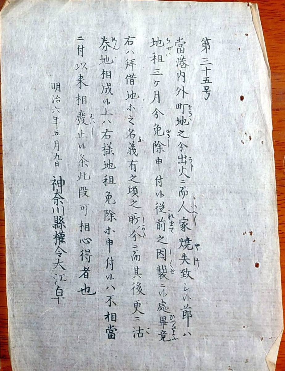 - f23022211〇明治布告布達 明治6年 神奈川県 出火焼失致し候節 地租免除 廃止〇和本古書古文書