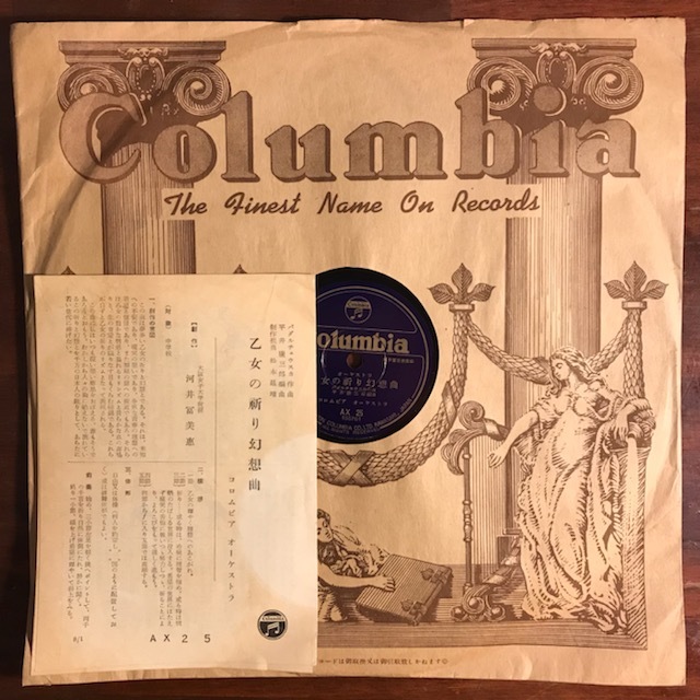 - 【美品 SP盤 試聴あり】コロムビア オーケストラ/乙女の祈り幻想曲 作曲:バダジェフスカ 編曲:平井康三郎/望郷 作曲:高田三郎/AX 25