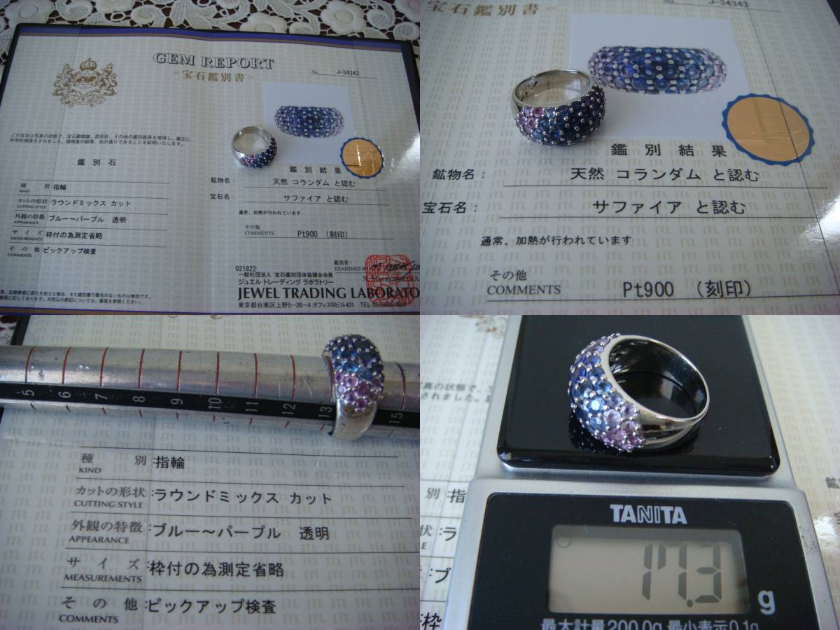 - ◎カラー グラデーション サファイヤ リング プラチナ製 鑑別書付き◎