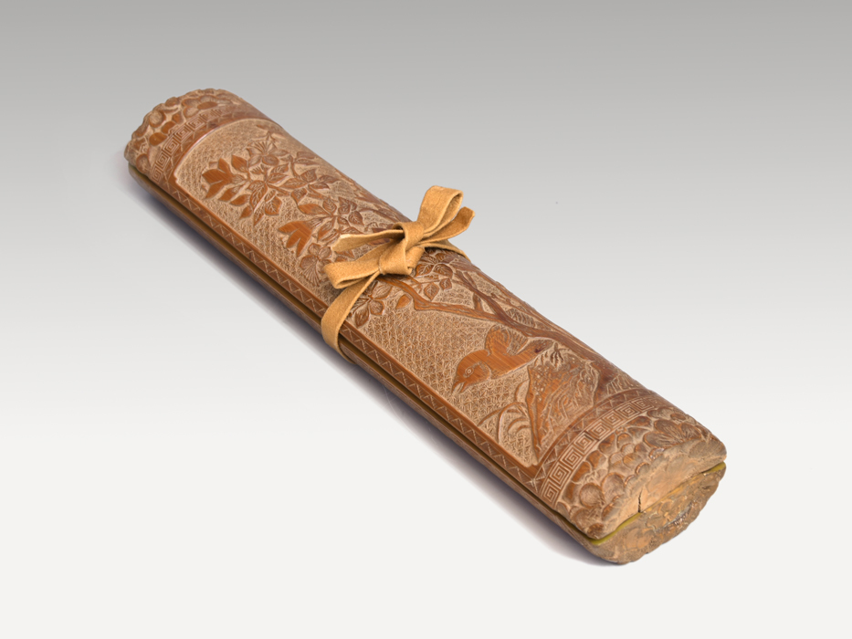 - 時代 竹彫製 巻物 軸箱 書画 絵画 天然木 竹工芸 木工芸 y0850