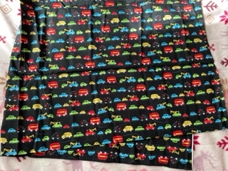 > 未使用★はぎれ★108×90cm+α★黒・車たくさん★はたらく車★巾着袋・クッションカバー★日本製★少々難