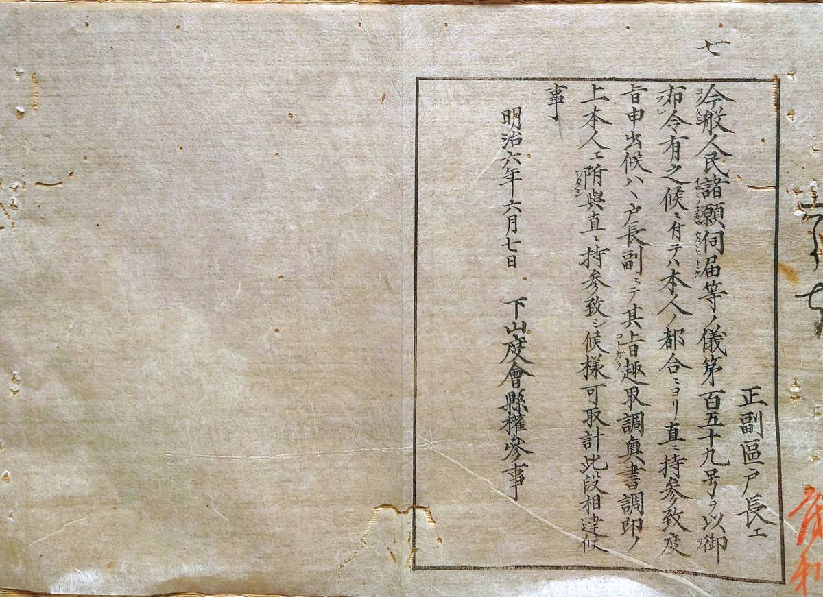 - f23030206〇明治布告布達 明治6年 人民諸願伺届等の儀 戸長にて取調奥書調印の上 度会県 三重県〇和本古書古文書