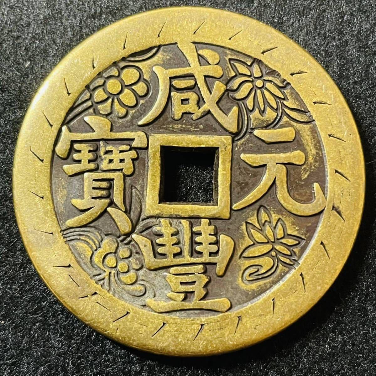 - 中国 清朝末年 骨董品 古物 コレクション 咸豊元宝 当 百 純銅 方孔銅銭 彫花銅銭 あ238