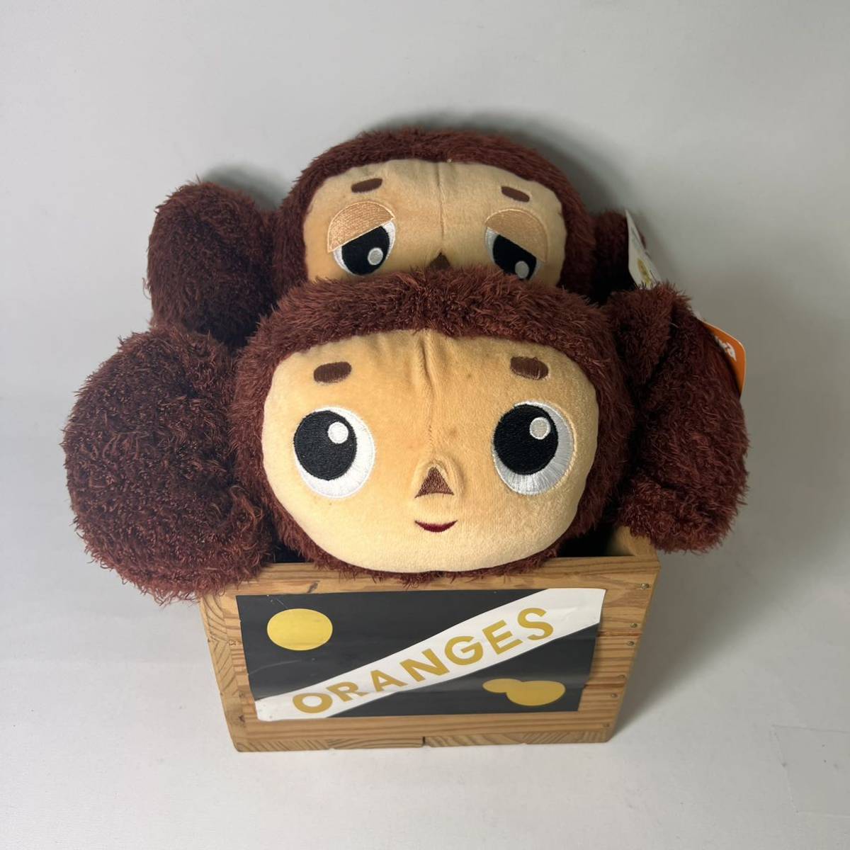 - 【中古品】チェブラーシカ 木箱 パペット 2体 セット ぬいぐるみ オレンジ みかん箱 フィギュア Cheburashka 玩具 おもちゃ