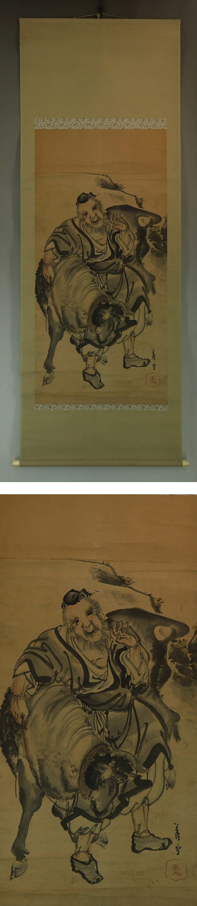 - 【真作】長沢芦雪【牛仙人】◆紙本◆合箱◆掛軸 u12130