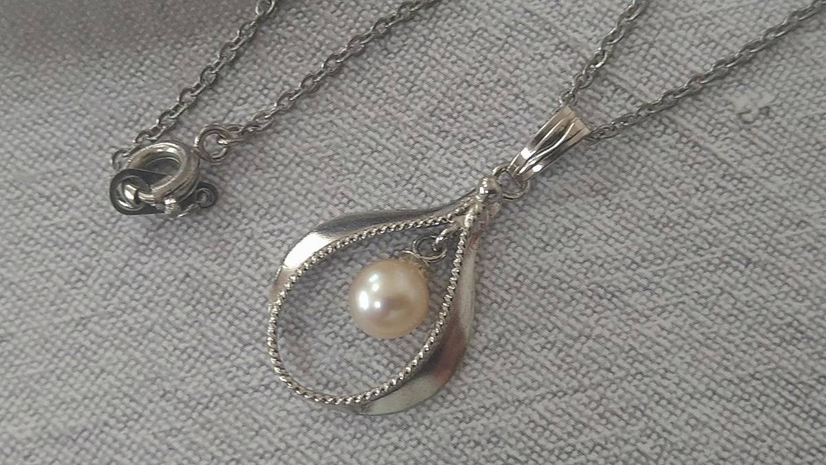 - 清楚な印象 しずく型シルバーカラー×1粒パールビジュー ネックレス