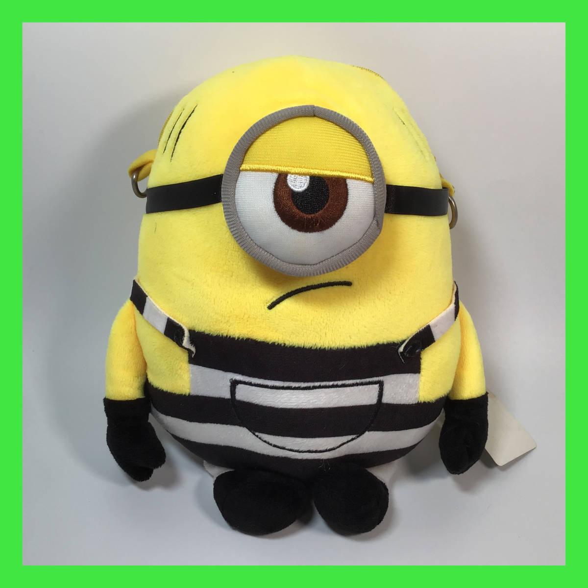 > N-754☆ ミニオンメル ぬいぐるみ ショルダーポーチ 黒白ボーダー ※ショルダーストラップ欠品、ほつれ・汚れ有り 商品タグ付き