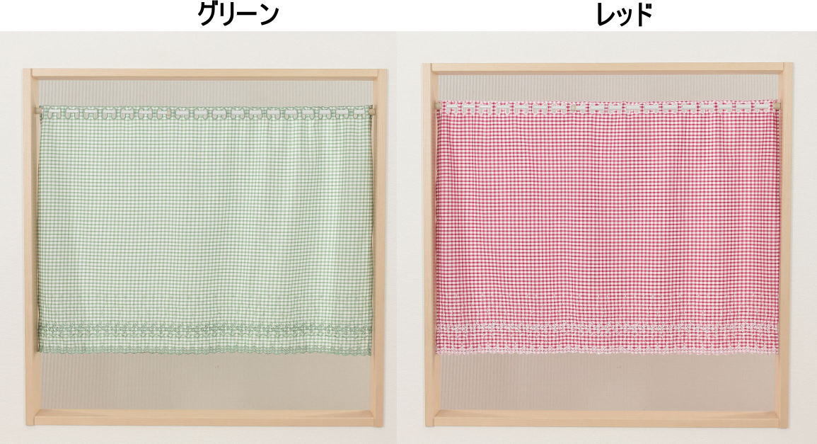 - カフェカーテン100×70cmチェック刺繍入りフローラnaru/ レッド16017/ 色はレッドでお届けします。