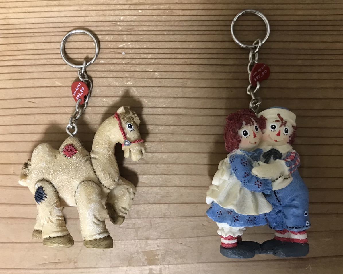 - 【新品・未使用】Raggedy Ann&Andy★キーホルダー2点セット★キャメル★箱サイズ約W11×H8×D3.3cm
