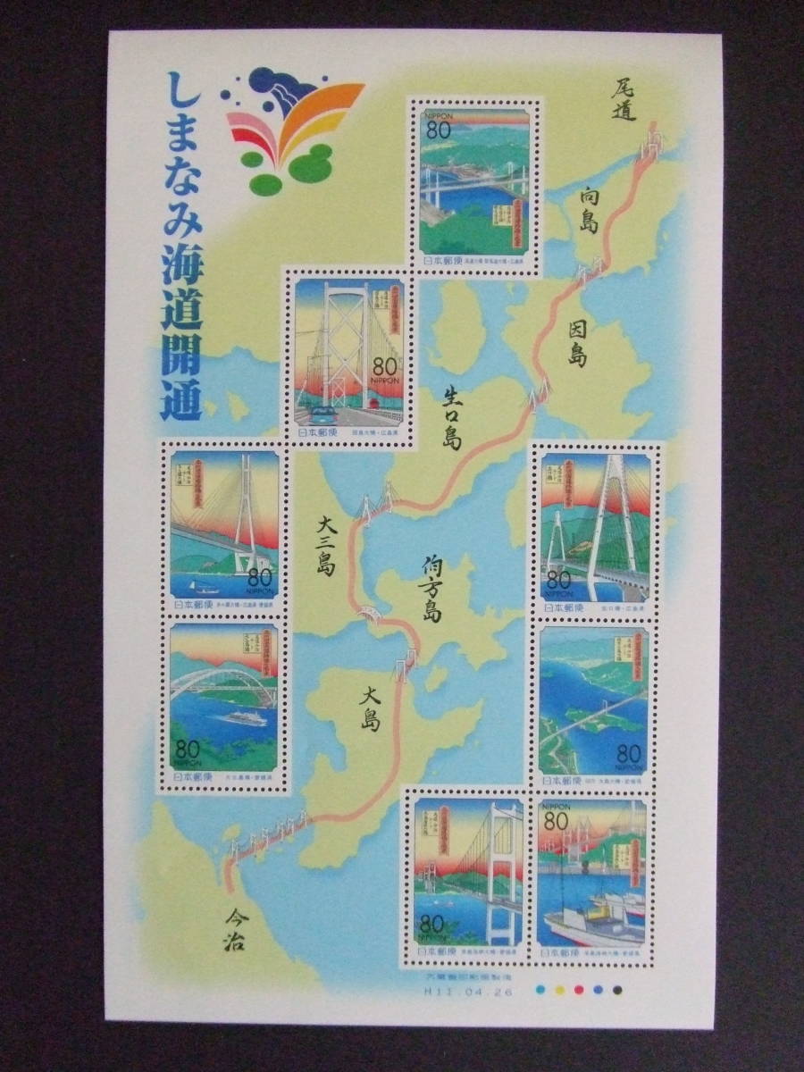 - 日本切手ー未使用 1999年しまなみ海道80円*8枚 1シート
