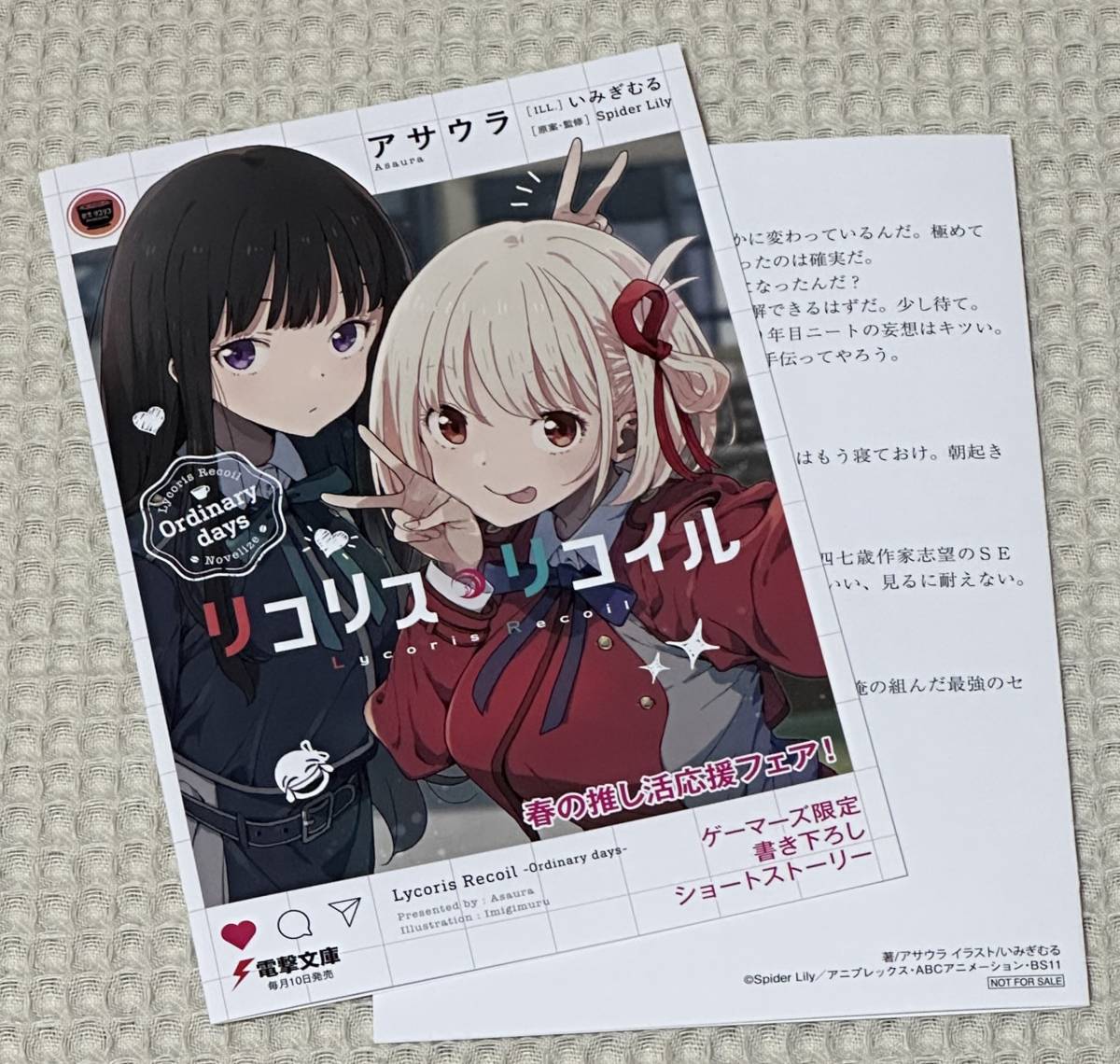 > リコリス・リコイル(リコリコ)[アサウラ/いみぎむる] : 非売品 / ゲーマーズ限定 描き下ろしショートストーリー /3冊(新品未読)
