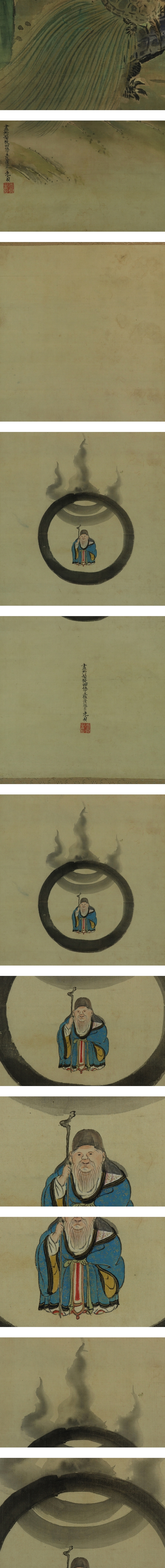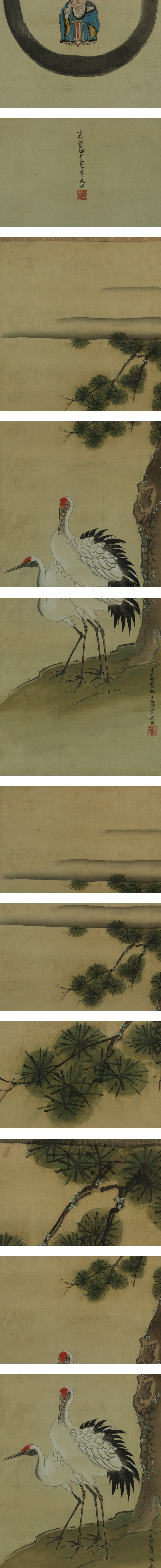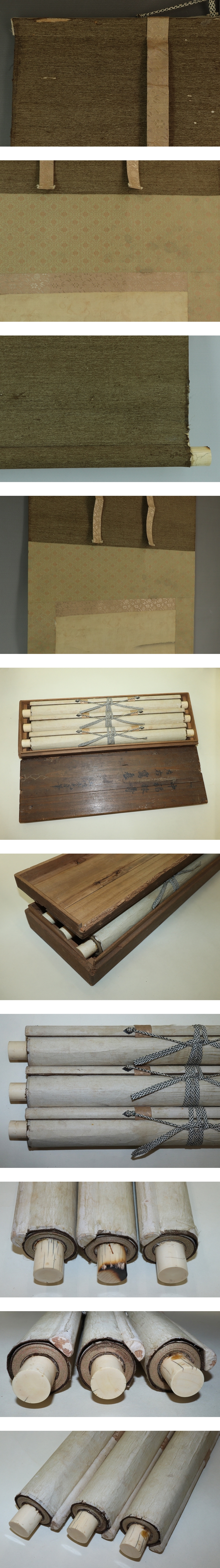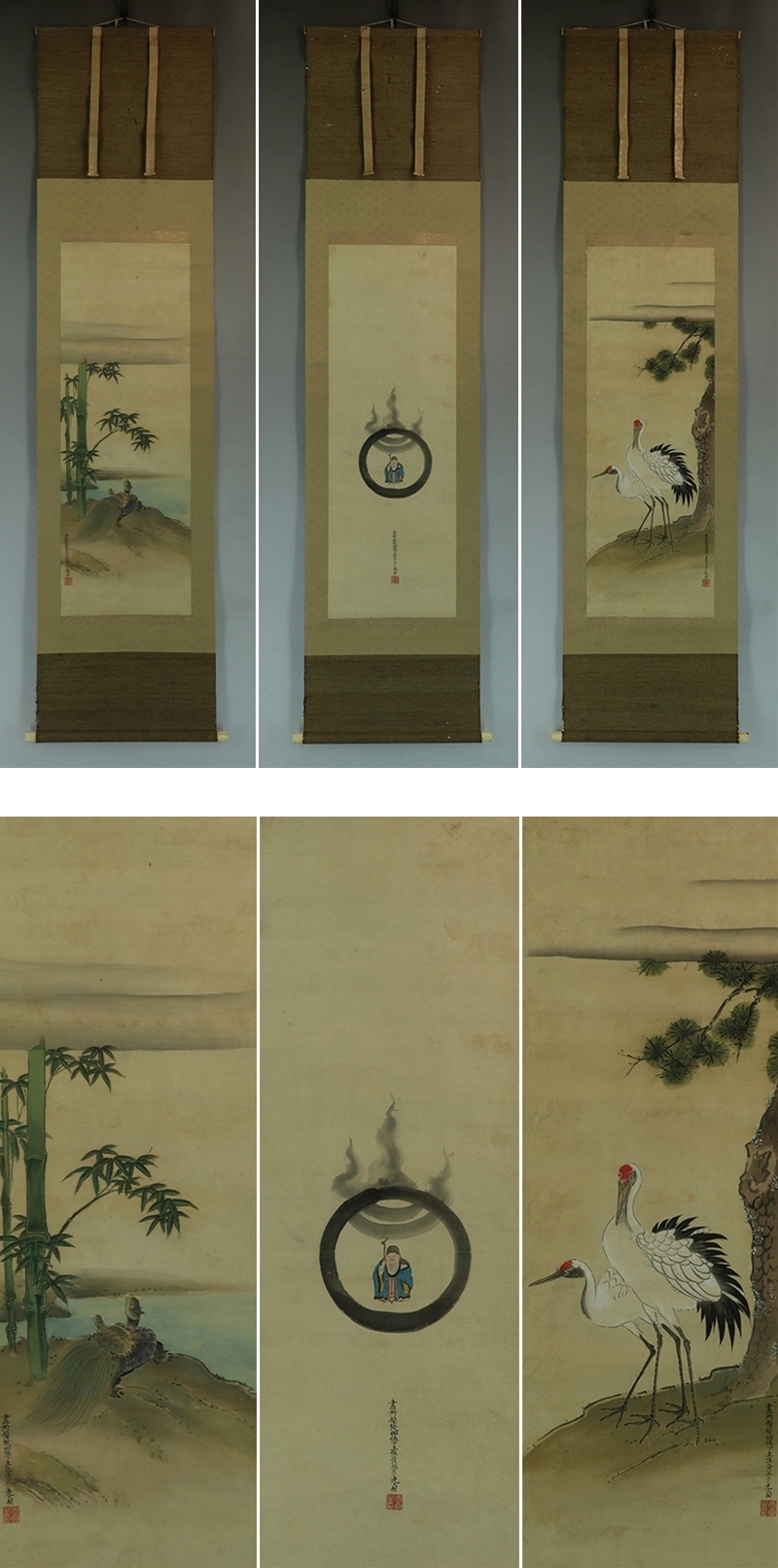 - 【真作】土佐光貞【三対幅・慶祝図】◆絹本◆合箱◆掛軸 u12087