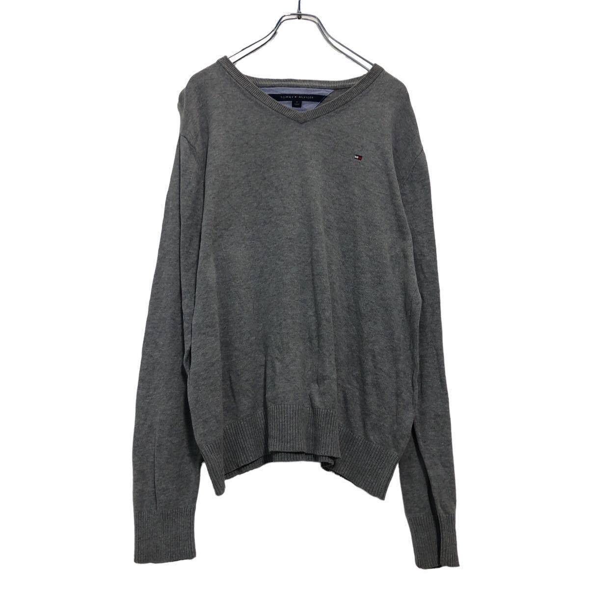 - TOMMYHILFIGER ニットセーター M グレー トミーヒルフィガー Vネック ワンポイント 古着卸 アメリカ仕入 a504-5217