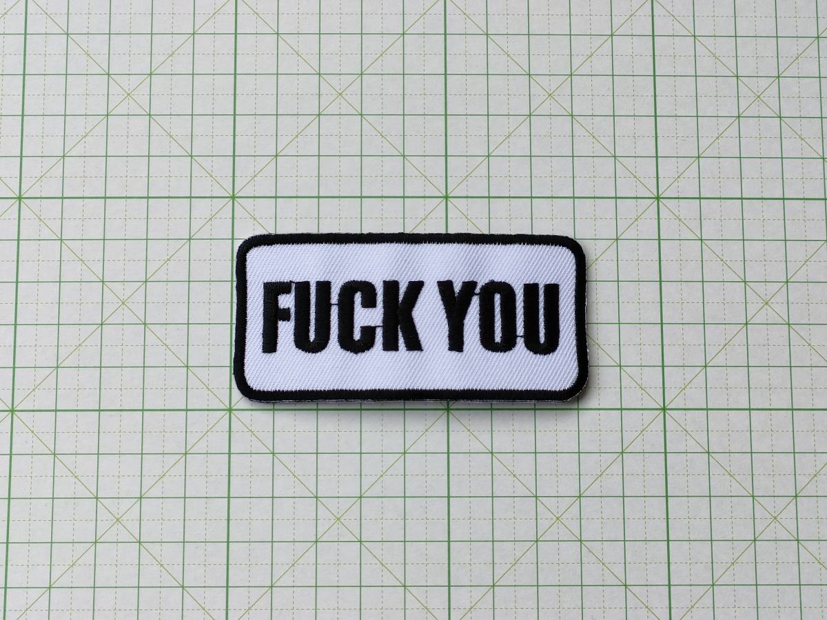 > //*◆ FUCK YOU ファック ユー ワッペン 黒枠白地 ◆ アイロン接着OK
