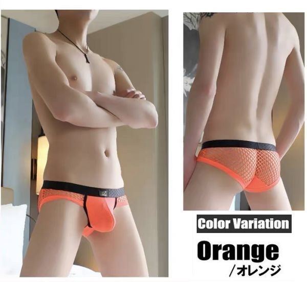 - 送料無料 メンズ下着 ビキニ 速乾 エロ下着 男性下着 セクシー パンツ エロパンツ 蒸れない モッコリパンツ SJ0005 オレンジ L
