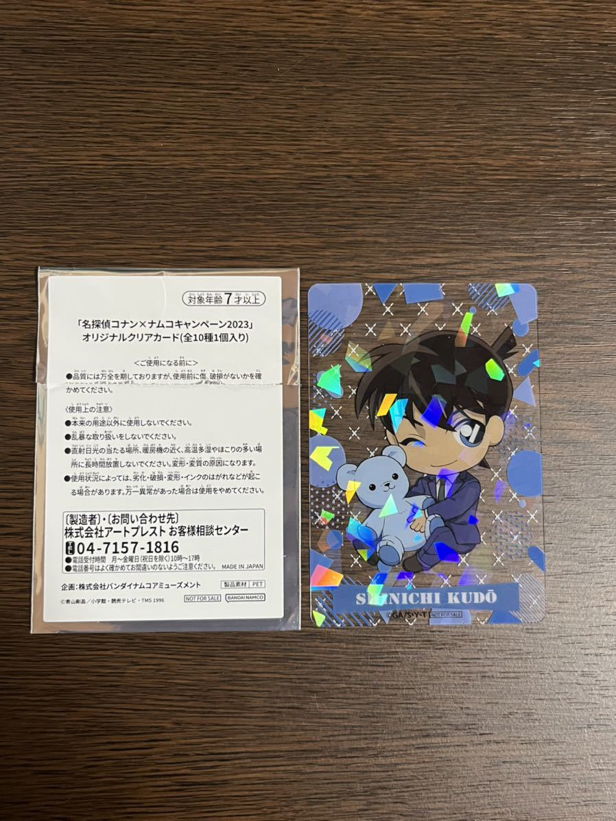 商品説明 ・名探偵コナン×ナムコキャンペーン2023 オリジナルクリアカード(工藤新一)の出品です。 ・初期の汚れスレ等はお許し下さい。 また一度人の手に渡り開封済みという事をご理解の上、気にされる方はご入札をご遠慮下さい。 ノークレーム・ノーリターンでお願いいたします。
