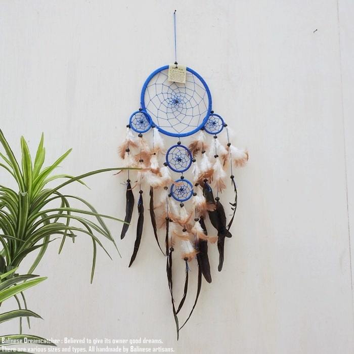 > ドリームキャッチャー マクラメ Size L 幅16.5cm 長さ70~74cm 青 ブルー ウォールインテリア ボーホー ボヘミアン