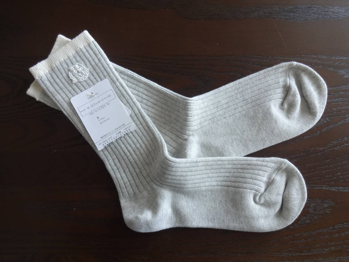 - ツモリチサト★ワコール新品ソックスM22~24㎝ 靴下★オーガニックコットン混 リブ編 ネコ顔刺繍 GY 送料185円追跡OK!