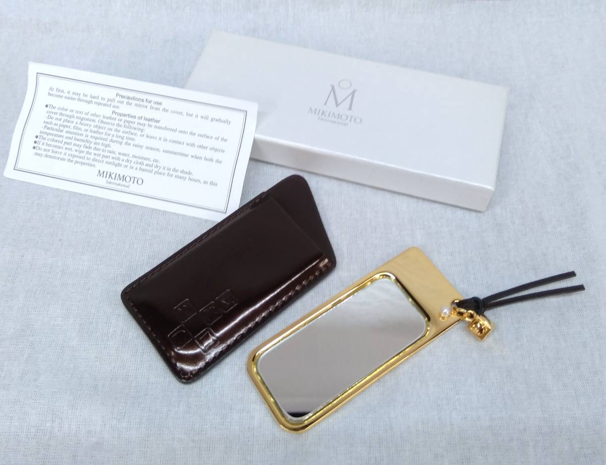 - [箱付] MIKIMOTO ミキモト コンパクトミラー ケース付き 小物 化粧グッズ エチケット 鏡 パール ロゴ 金 ゴールド