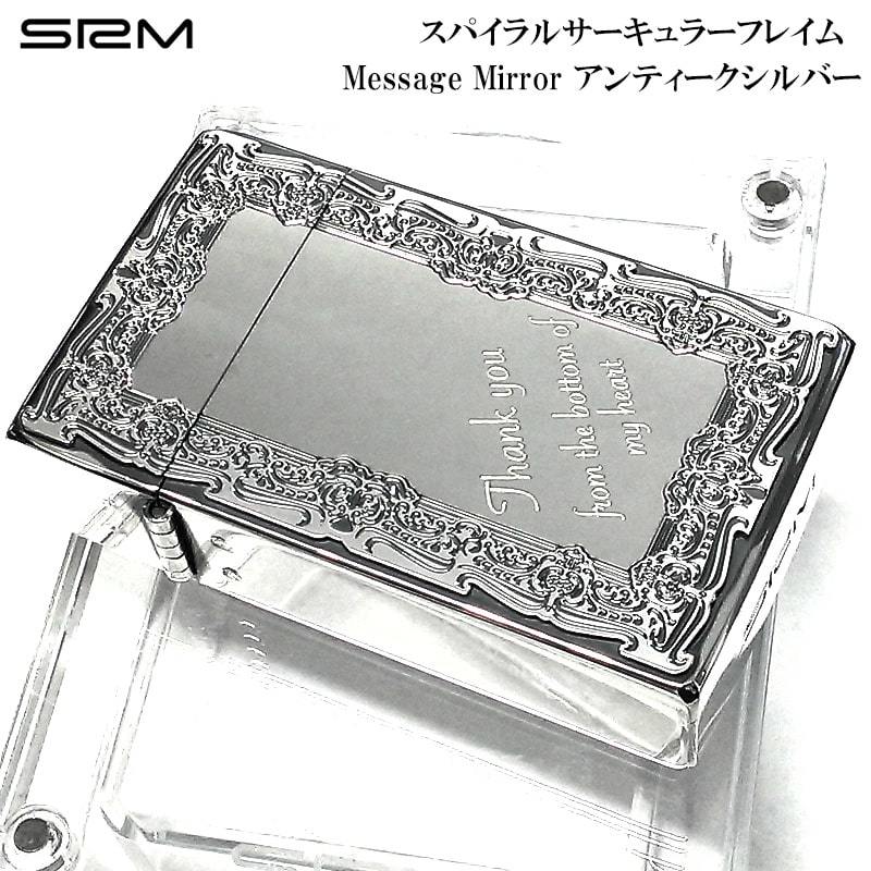 - ガスライター SAROME 訳あり特価 メッセージミラー ありがとう SRM アンティークシルバー サロメ スパイラルサーキュラーフレイム