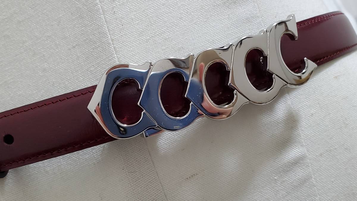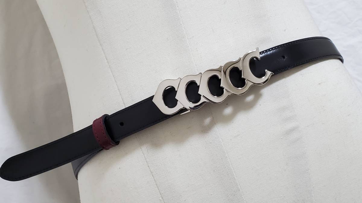 - 正規美 レア Cartierカルティエ 5連ロゴ コンビネーションCバックル レザーベルト 赤×黒 81~94 調節可 クラシックラグジュアリー 男女兼用