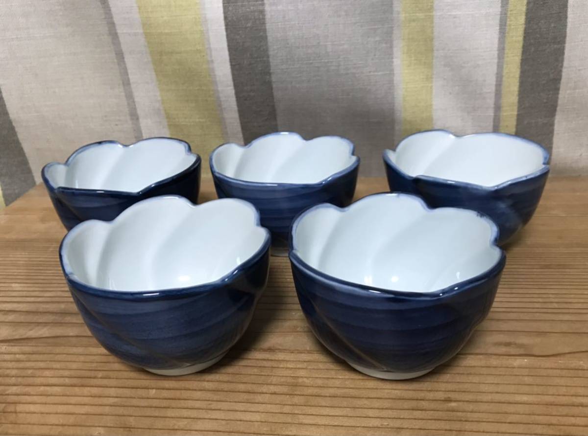 - 小鉢★陶器★庄★5個セット★ブルー★直径約10×高さ約6.5 cm