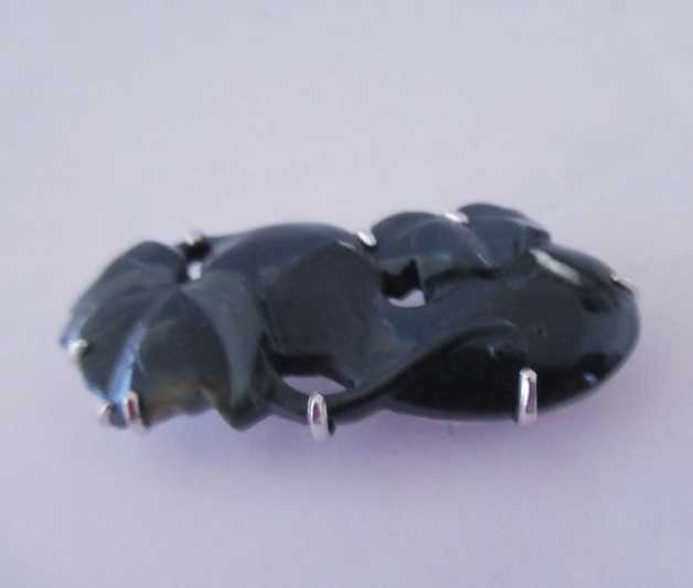 - 【帯留・かんざし】メノウの帯留 シルバー 刻印あり 濃いグリーンのカラー ひょうたんのデザイン 和装小物 骨董品 アンティーク