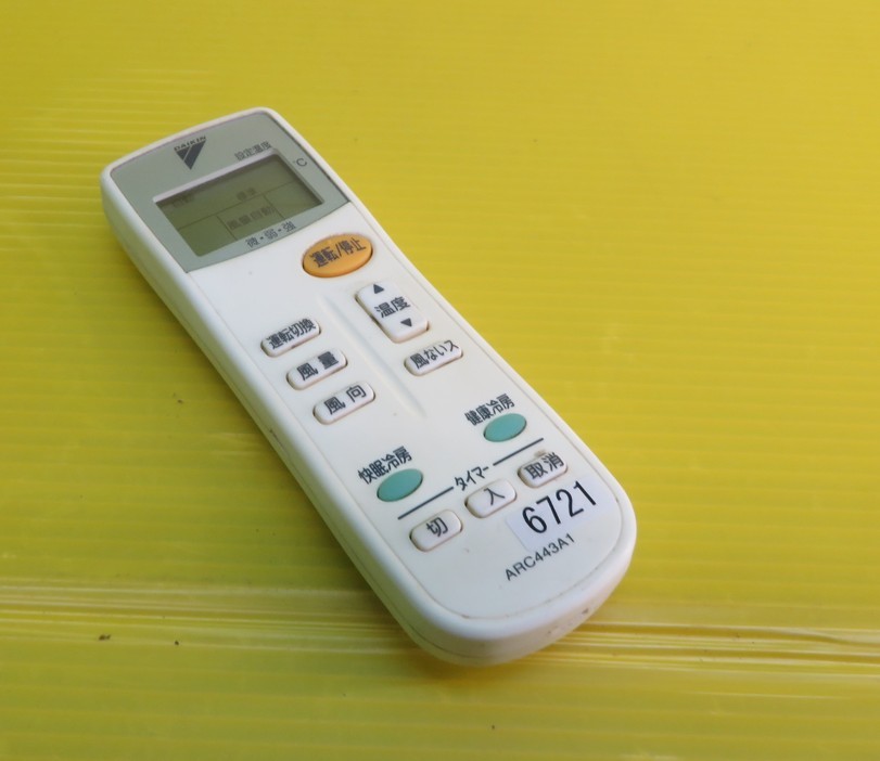 - D-6721■DAIKIN ダイキン エアコン リモコン ARC443A1■ 動作品 保証付