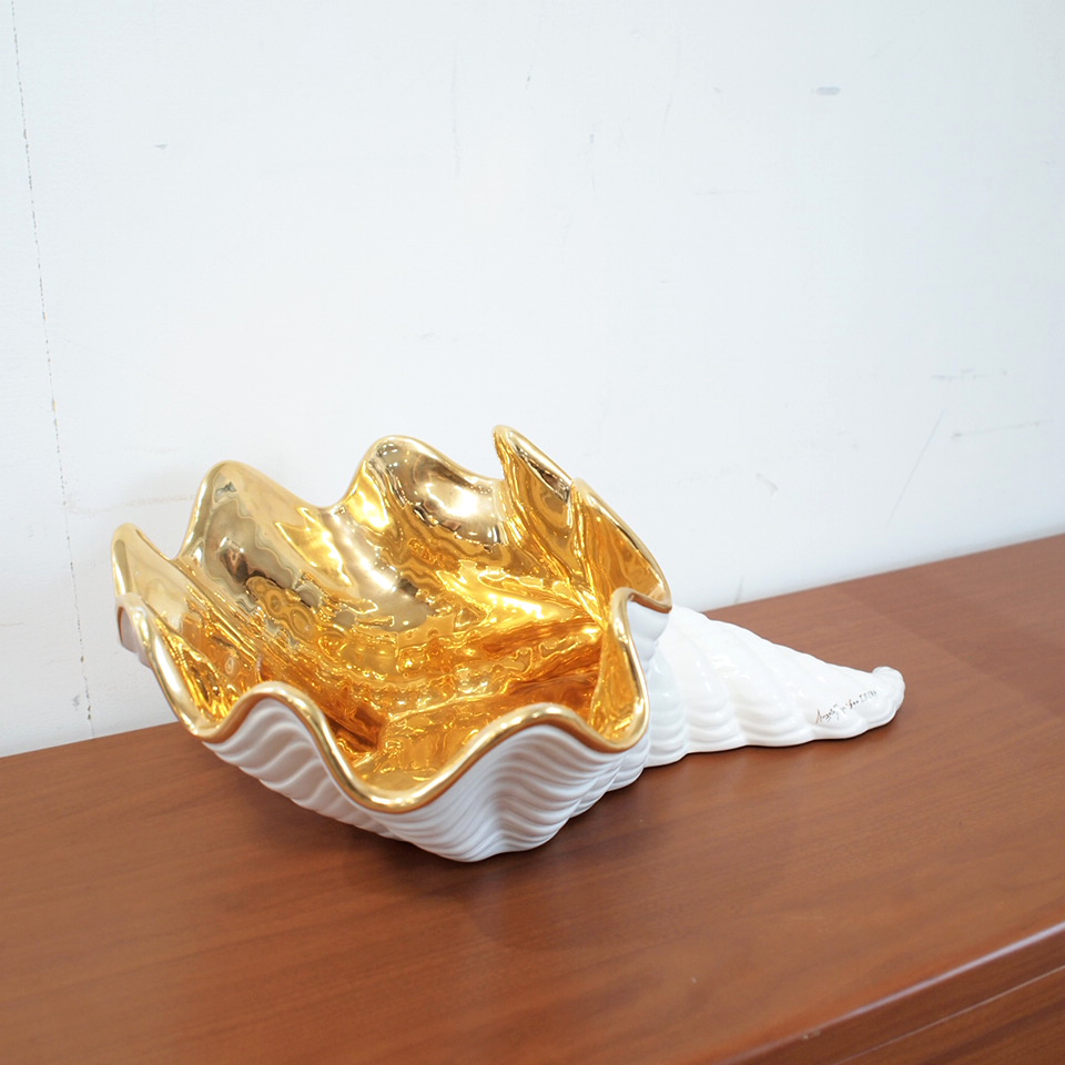 - モデルルーム展示品 Angela Rigoni / アンジェラ・リゴーニ イタリア製 花器/フラワーベース 貝 ゴールド ハンドメイド 金彩