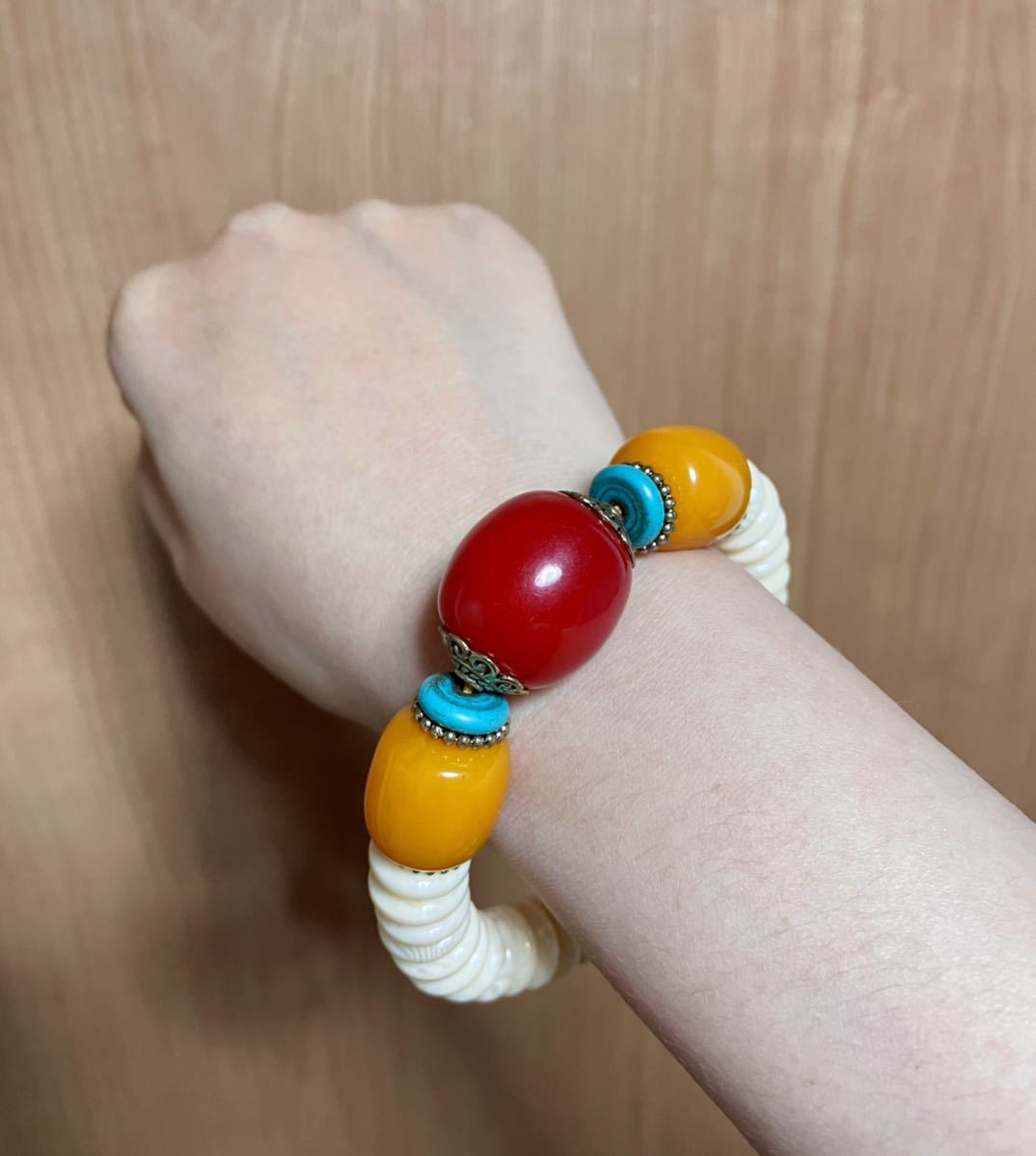 - 蜜蝋ブレスレット アクセサリー ホワイト 男女兼用 小物ファッション レッド 魔除 セール 合成琥珀 お守 開運 幸運 ラッキー レディース