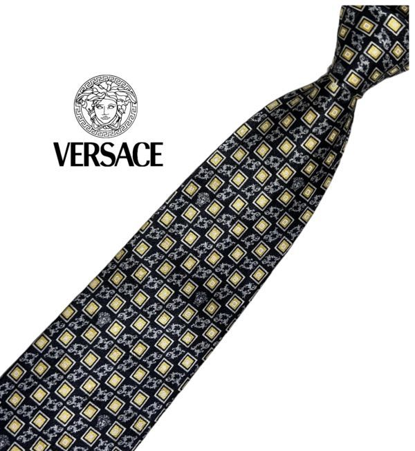 - VERSACE ネクタイ メデューサ 透かしグレカ パターン柄 ヴェルサーチェ 切り替えし USED 中古 t417