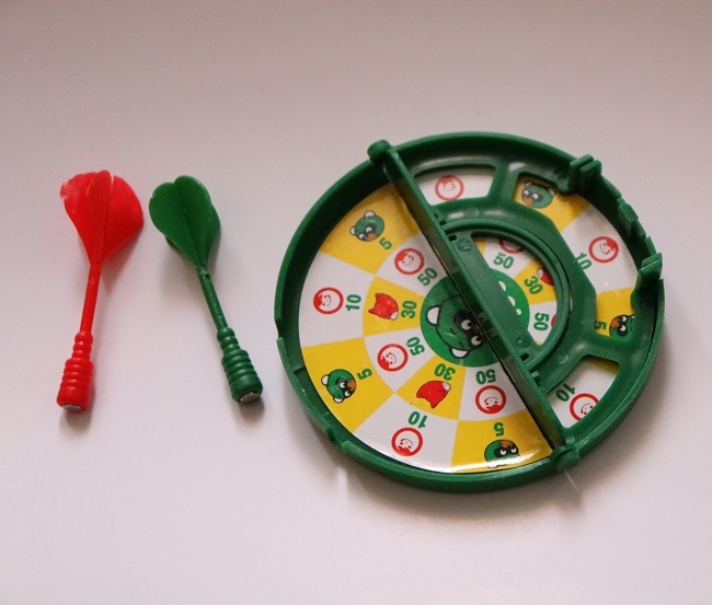 - 超レア!美品!緑のたぬき どん兵衛 的当てゲーム 弓矢 ノベルティ タヌキ 狸 直径約8cm プラスティック製品 マグネット製品