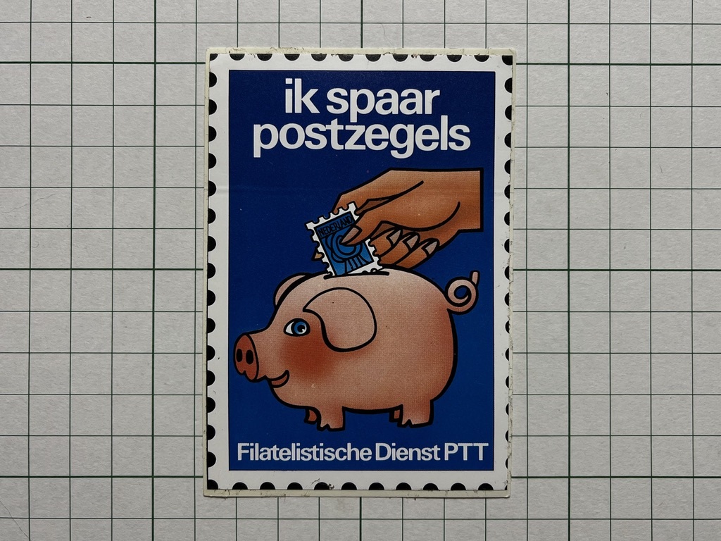 - 外国 古いステッカー: ik spaar postzegelels 切手 収集 豚 ブタ 貯金箱 ビンテージ カスタム +Ob