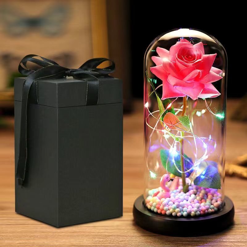 - 花束 高級な花 枯れない花 永遠の花 電池式 LEDライト付き ガラスポット 告白 結婚記念日 誕生日プレゼント ギフトボックス 贈り物