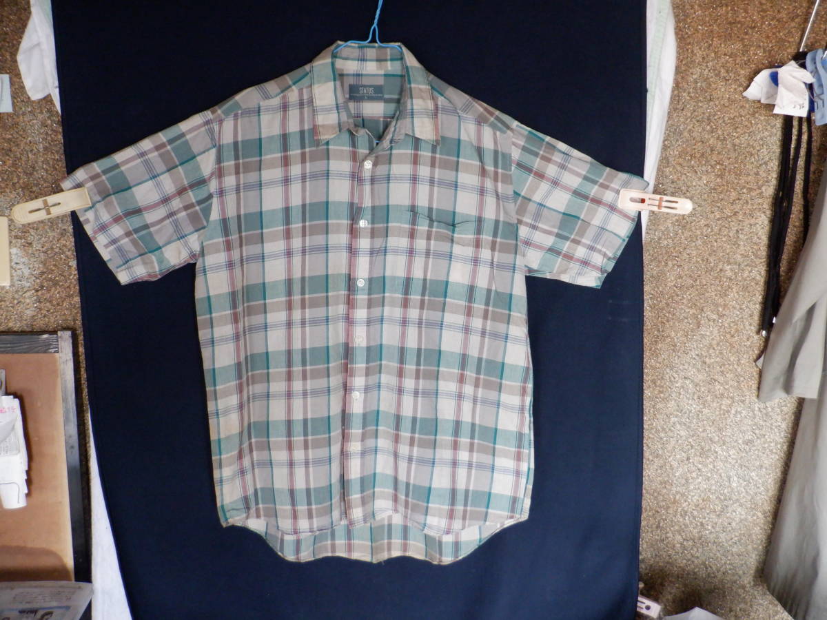 - STATUS 半袖シャツ 麻混 グリーンとベージュのチェック柄 Lサイズ