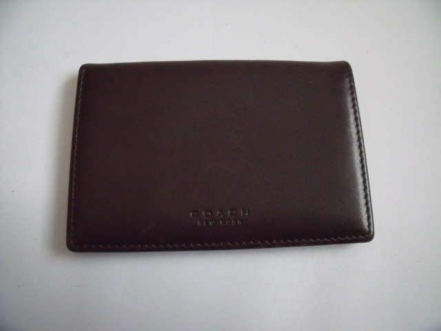 > $ 美品 $ ■ COACH ■ コーチ ◆ ロゴ入り 本革 レザー製 ◆ カードケース 名刺入れ 定期入れ付き ◆ 黒 ダークブラウン系 ◆ 送料無料!