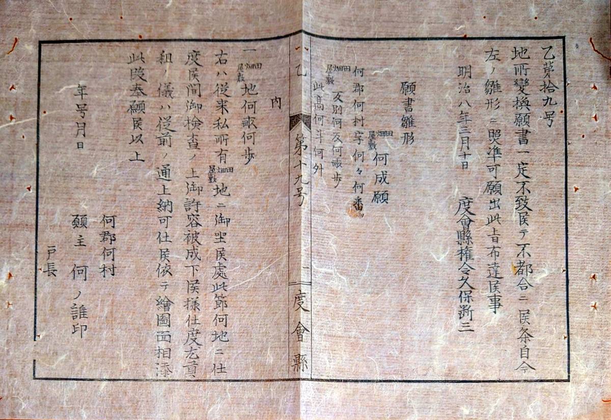 - f23051621〇明治布告布達 地所変換願書 願書雛形 日本型船金比羅丸行方不明 度会県 三重県 明治7年〇和本古書古文書