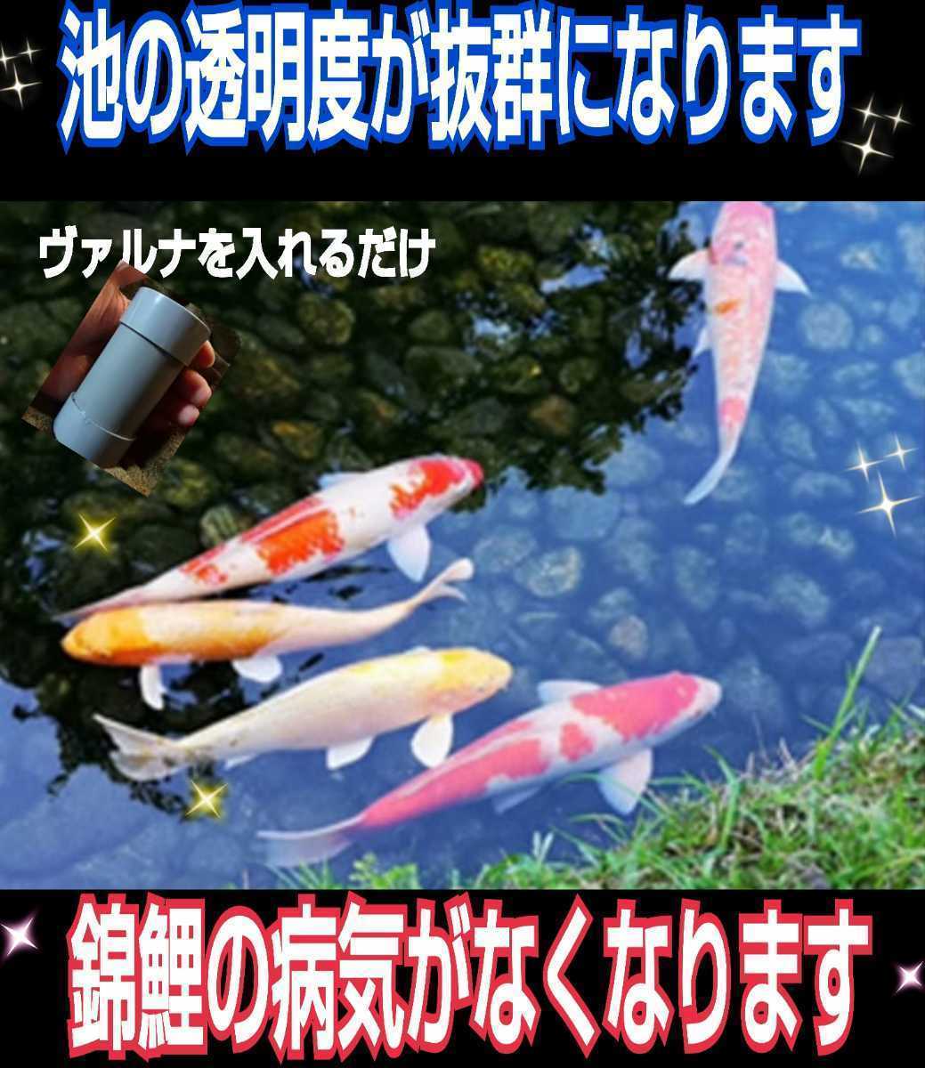 錦鯉の品評会に参加されてる方が池に入れたら水質が改善され水が清んできた、らんちゅうやアロワナの飼育者からはヴァルナを入れて2日後に透明度が増し驚いた、海水魚の飼育者からは臆病で隠れてばかりいた魚が活発になったなどたくさんの報告が届いています。