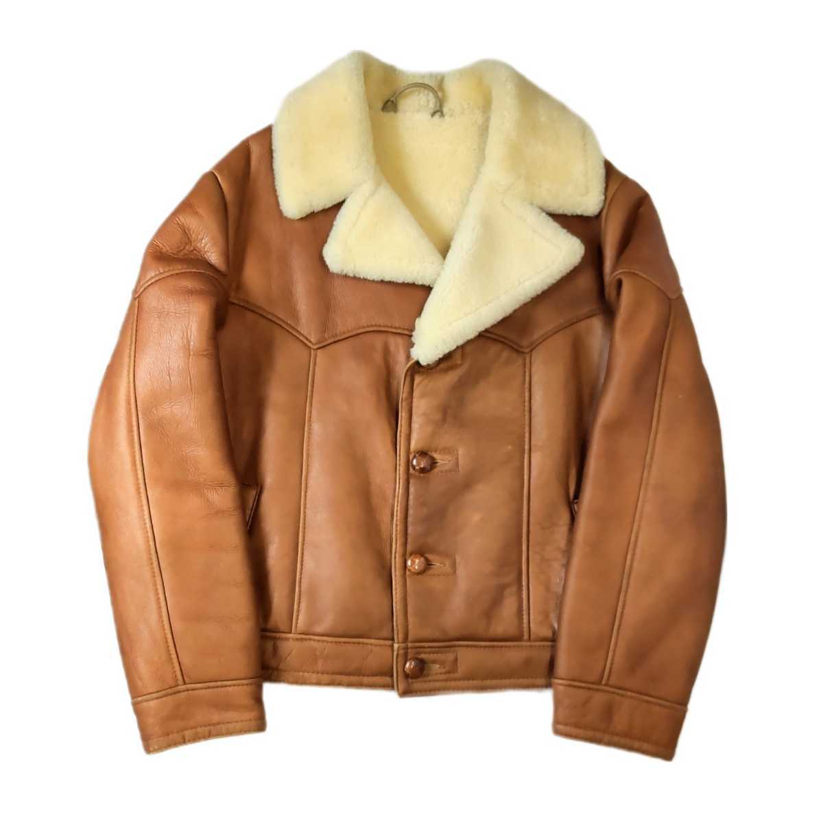 > Vintage ARDNEY アードニー USA製 ムートン シープスキン ジャケット ライダース 羊革 コート ブルゾン ブラウン 42