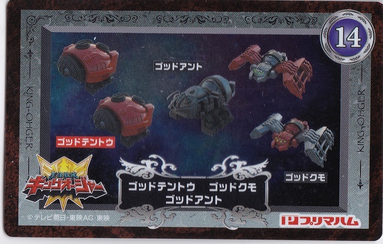 - プリマハム『王様戦隊キングオージャー』ソーセージメタリックカード【14】ゴッドテントウ・ゴッドクモ・ゴッドアント 美品