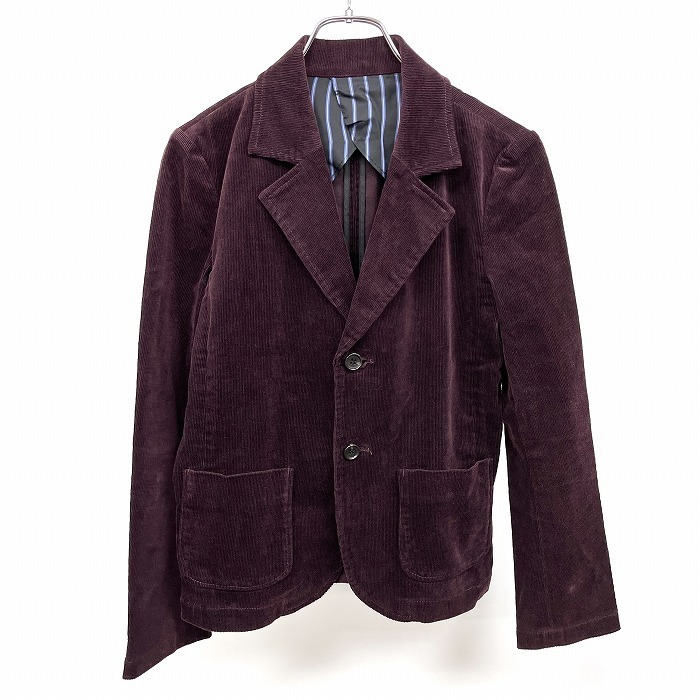 > シップス SHIPS コーデュロイ テーラードジャケット 裏地無し 無地 2つボタン 長袖 日本製 綿×ポリウレタン S ワインレッド レディース
