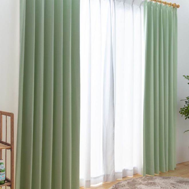 - カーテン 幅150cm×丈195cm2枚 ライトグリーン 完全遮光 遮光1級 省エネ 遮音 遮熱 断熱 保温 日本製 形状記憶加工付 246サイズ展開