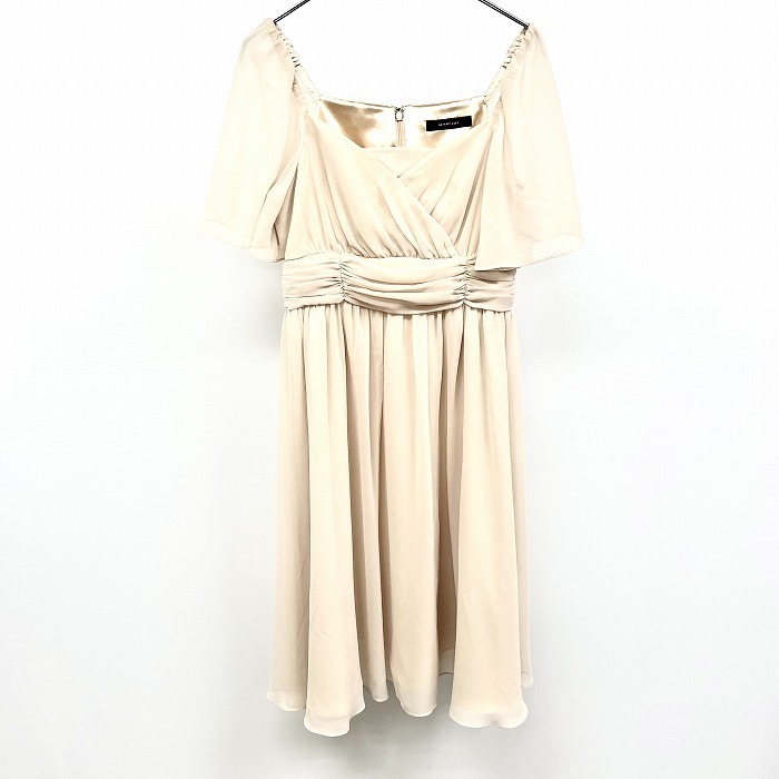 > INTERPLANET 薄手 シフォンワンピース 裏地付き エンジェルスリーブ カシュクール風 無地 半袖 ポリ100% 38 ベージュ レディース