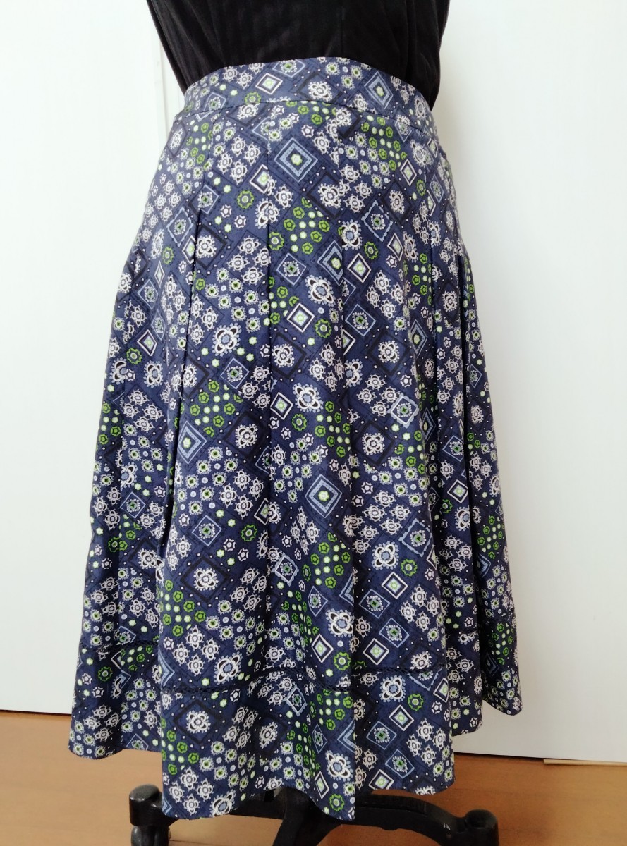 - Paul Stuart*ポールスチュアート*膝丈スカート*シルク100%*絹*総柄*紺*サイズ6*レディースM*三陽商会*日本製*美品*タック入り