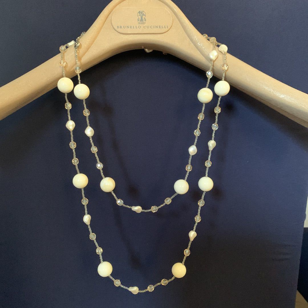 > 送料無料 アジアンネックレス ビーズ 124㎝ PAT 2007 USA PAT アクセサリー 白い石 パール風 透明 レディース 昭和レトロ クリスマス Xmas