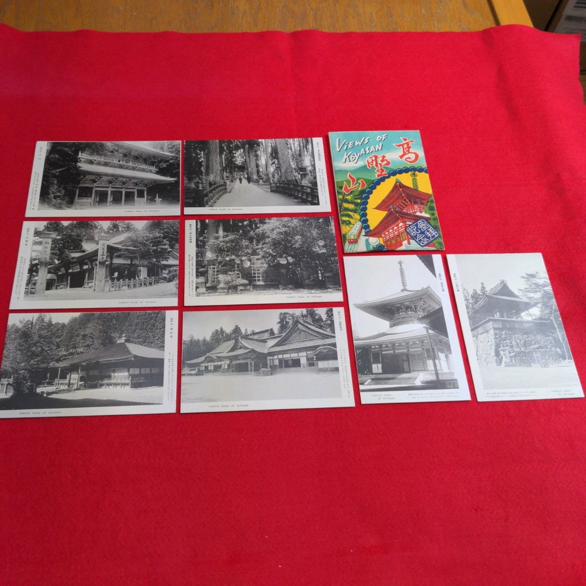 - 古い絵葉書 高野山 8枚 奥の院 六時の鐘 金剛峯寺 御影堂 ヴィンテージ アンティーク 希少 ハガキ はがき 当時物 印刷物