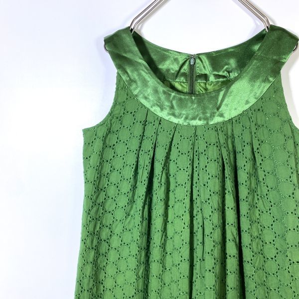 - 【美品】Otto オットー ドットレース ワンピース ノースリーブ サイズ9 グリーン 緑