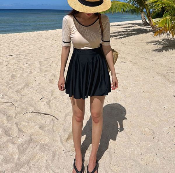 - ★★★大反響の予感! レディース 水着 ワンピース ミニスカート バックオープン e19