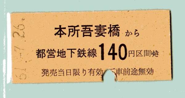 - ☆硬券/本所吾妻橋から都営地下鉄線140円区間 4151☆